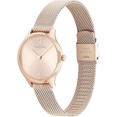 This Calvin Klein watch has a case made of stainless steel with a diameter of 28 mm and is fitted with a stainless steel band. Inside the case lies a Seiko Instruments Inc. movement and the watch features a Mineral crystal.