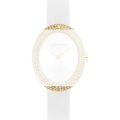 This Calvin Klein watch strap is made of leather and is attached to the watch by means of steel pins. The band has a width of 10 mm and is closed by means of a buckle. The strap has no straight mount which means that this strap is only suitable for the watches listed below.