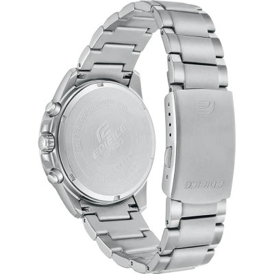 This Casio Edifice watch has a case made of stainless steel with a diameter of 43.8 mm and is fitted with a stainless steel band. Inside the case lies a Casio movement and the watch features a Mineral crystal.