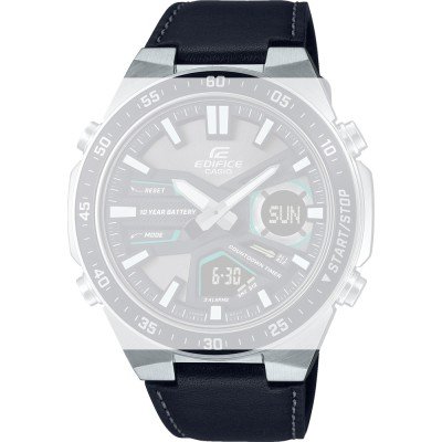 This Casio Edifice watch strap is made of leather and is attached to the watch by means of pushpins. The band has a width of 25 mm and is closed by means of a buckle. The strap has no straight mount which means that this strap is only suitable for the watches listed below.