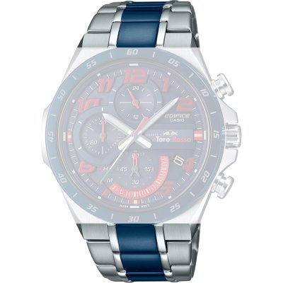This Casio Edifice watch strap is made of stainless steel and is attached to the watch by means of steel pins. The band has a width of 26 mm and is closed by means of a deployment clasp with push buttons. The strap has no straight mount which means that this strap is only suitable for the watches listed below.