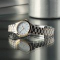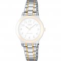 This Casio watch has a case made of metal alloy with a diameter of 27 mm and is fitted with a stainless steel band. Inside the case lies a Casio movement and the watch features a Mineral crystal.