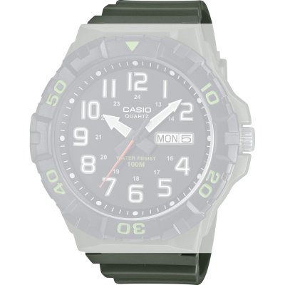 This Casio watch strap is made of resin and is attached to the watch by means of pushpins. The band has a width of 27 mm and is closed by means of a buckle. The strap has no straight mount which means that this strap is only suitable for the watches listed below.