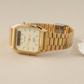 This Casio watch has a case made of Resin with a diameter of 29.8 mm and is fitted with a stainless steel band. Inside the case lies a Casio movement and the watch features a Acrylic crystal.