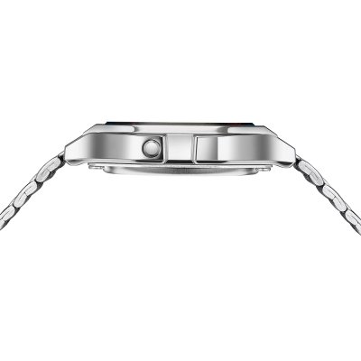 This Casio watch has a case made of Resin with a diameter of 33.2 mm and is fitted with a stainless steel band. Inside the case lies a Casio movement and the watch features a Mineral crystal.