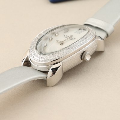 This Charmex of Switzerland watch has a case made of stainless steel with a diameter of 28 mm and is fitted with a Satin Leather band. Inside the case lies a Ronda movement and the watch features a Sapphire crystal.