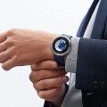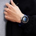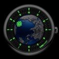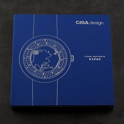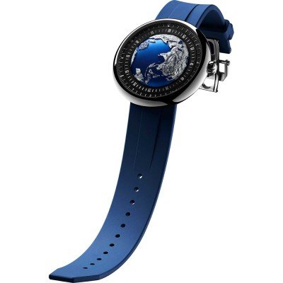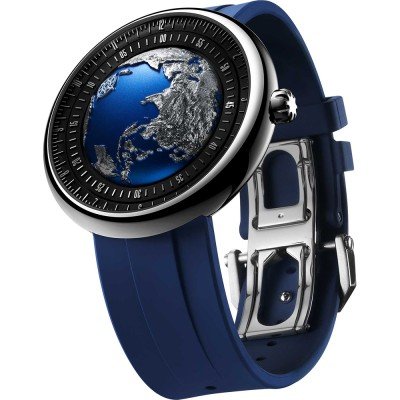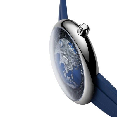 The Ciga Design U Series Blue Planet Automatic U031-TU04-W6U is a truly unique watch that combines extraordinary design with advanced technology. The Blue Planet Collection is renowned for its unique interpretation of time and environmental symbolism. This collection has received critical acclaim, notably winning the Challenge Watch Prize at the 2021 (GPHG). The relief watch dial mimics the earth’s rotation and stands for taking care of our blue planet. The watch is powered by a self-designed automatic movement which was developed in collaboration with Seagull. This movement employs a unique gear ratio, allowing the hour hand, which is the globe itself, to rotate 30° whereas the minute hand rotates 390°. This non-synchronous trailing feature, inspired by ancient sundials, redefines time-telling by combining a static 12-hour scale with a rotating minute one. The mariner’s symbol – or compass rose – acts as a single pointer while the minute dial rotates with the passing time. This truy extraordinary watch comes in a gorgeous presentation book which besides the watch contains the matching blue strap and all documentation.