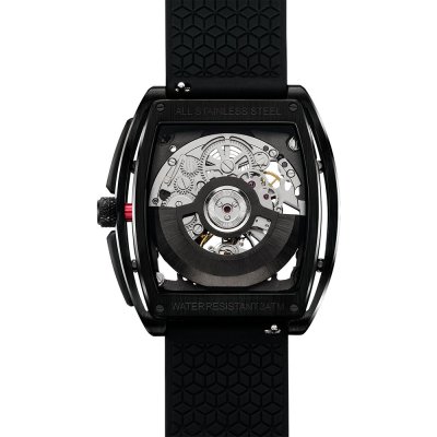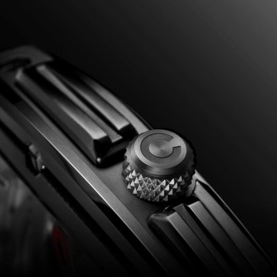 This CIGA Design watch has a case made of DLC coated steel with a diameter of 40.8 mm and is fitted with a rubber band. Inside the case lies a Seagull movement and the watch features a Sapphire crystal.