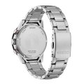 This Citizen watch has a case made of stainless steel with a diameter of 40 mm and is fitted with a stainless steel band. Inside the case lies a Citizen movement and the watch features a Mineral crystal.