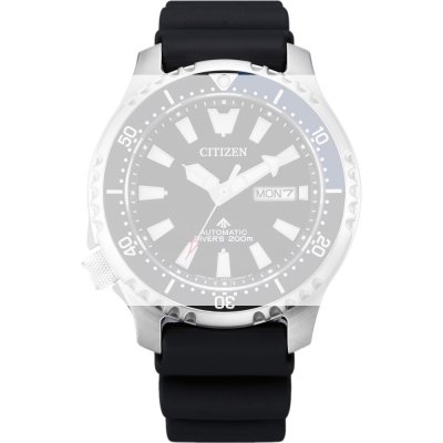 This Citizen watch strap is made of silicone and is attached to the watch by means of pushpins. The band has a width of 20 mm and is closed by means of a buckle. The strap has no straight mount which means that this strap is only suitable for the watches listed below.