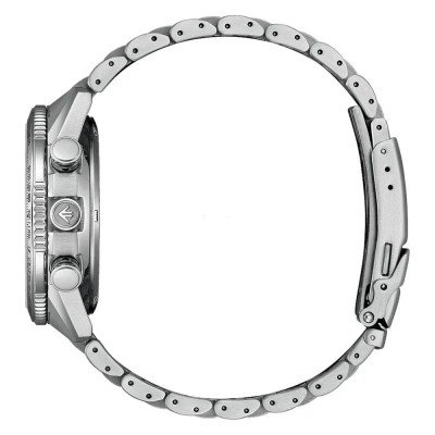 This Citizen watch has a case made of stainless steel with a diameter of 43 mm and is fitted with a stainless steel band. Inside the case lies a Citizen movement and the watch features a Single anti-reflective sapphire crystal.