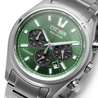 This Citizen watch has a case made of Super Titanium with a diameter of 40 mm and is fitted with a Super Titanium band. Inside the case lies a Citizen movement and the watch features a Double anti-reflective sapphire crystal.