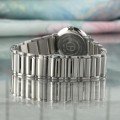 This Claude Bernard watch has a case made of stainless steel with a diameter of 27 mm and is fitted with a stainless steel band. Inside the case lies a Ronda movement and the watch features a Mineral crystal.