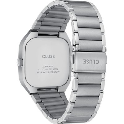 This Cluse watch has a case made of stainless steel with a diameter of 35 mm and is fitted with a stainless steel band. Inside the case lies a Miyota movement and the watch features a Mineral crystal.