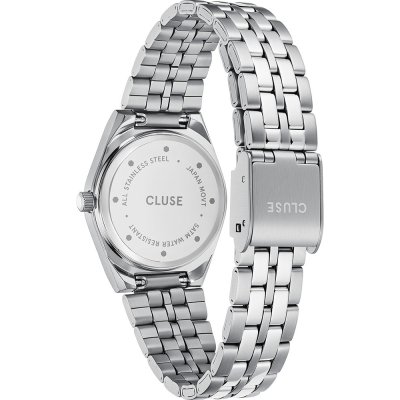 This Cluse watch has a case made of stainless steel with a diameter of 26 mm and is fitted with a stainless steel band. Inside the case lies a Seiko movement and the watch features a Mineral crystal.