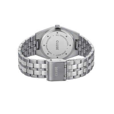 This Cluse watch has a case made of stainless steel with a diameter of 33 mm and is fitted with a stainless steel band. Inside the case lies a Seiko movement and the watch features a Mineral crystal.