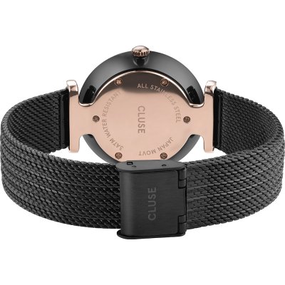 This Cluse watch has a case made of stainless steel with a diameter of 33 mm and is fitted with a stainless steel band. Inside the case lies a Miyota movement and the watch features a Mineral crystal.