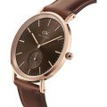 This Daniel Wellington watch has a case made of stainless steel with a diameter of 40 mm and is fitted with a leather band.