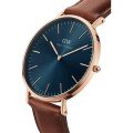 This Daniel Wellington watch has a case made of stainless steel with a diameter of 40 mm and is fitted with a leather band. Inside the case lies a Miyota movement and the watch features a Mineral crystal.