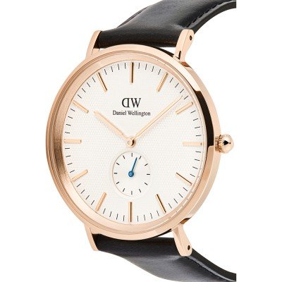 This Daniel Wellington watch has a case made of stainless steel with a diameter of 40 mm and is fitted with a leather band.