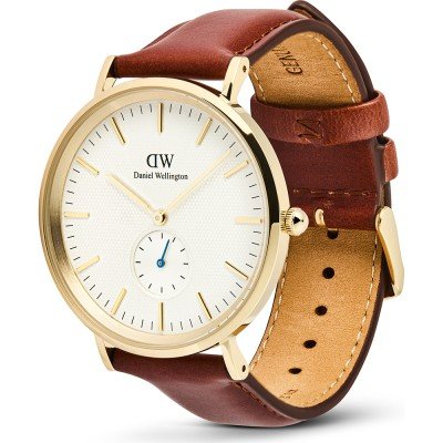 This Daniel Wellington watch has a case made of stainless steel with a diameter of 40 mm and is fitted with a leather band.