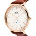 This Daniel Wellington watch has a case made of stainless steel with a diameter of 40 mm and is fitted with a leather band.