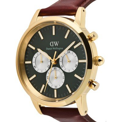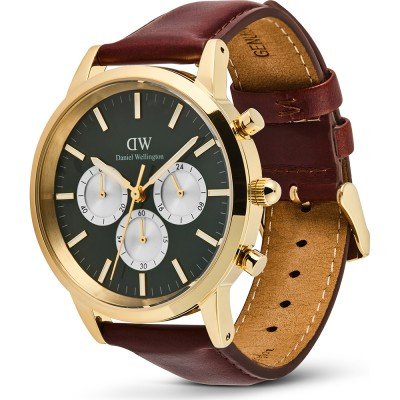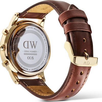 This Daniel Wellington watch has a case made of stainless steel with a diameter of 42 mm and is fitted with a leather band.