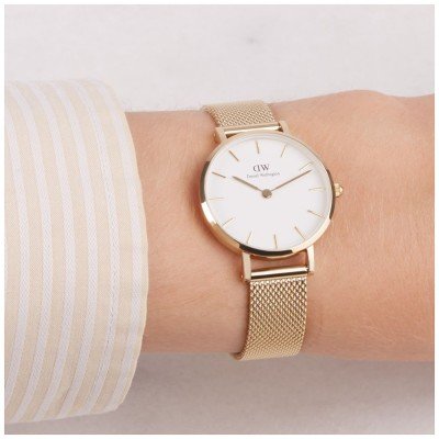 This Daniel Wellington watch has a case made of stainless steel with a diameter of 28 mm and is fitted with a stainless steel band. Inside the case lies a Miyota movement and the watch features a Mineral crystal.