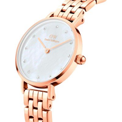 This Daniel Wellington watch has a case made of stainless steel with a diameter of 28 mm and is fitted with a stainless steel band.