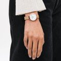 This Daniel Wellington watch has a case made of stainless steel with a diameter of 28 mm and is fitted with a stainless steel band.
