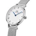 This Daniel Wellington watch has a case made of stainless steel with a diameter of 28 mm and is fitted with a stainless steel band.
