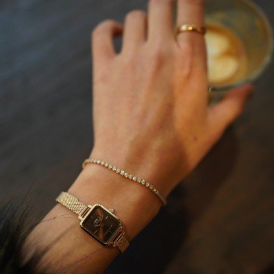 This Daniel Wellington watch has a case made of stainless steel with a diameter of 15 mm and is fitted with a stainless steel band.