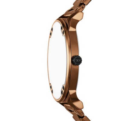 This Diesel watch has a case made of stainless steel with a diameter of 54 mm and is fitted with a stainless steel band. Inside the case lies a Miyota movement and the watch features a Mineral crystal.
