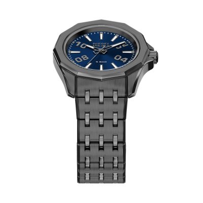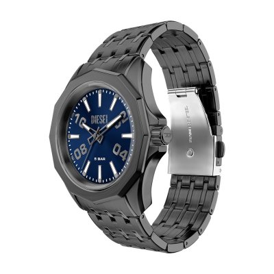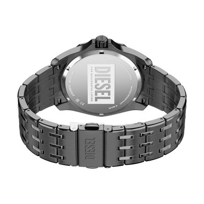 This Diesel watch has a case made of stainless steel with a diameter of 44 mm and is fitted with a stainless steel band. Inside the case lies a Miyota movement and the watch features a Mineral crystal.