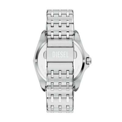This Diesel watch has a case made of stainless steel with a diameter of 44 mm and is fitted with a stainless steel band. Inside the case lies a Miyota movement and the watch features a Mineral crystal.