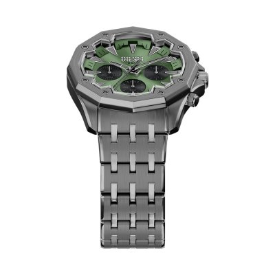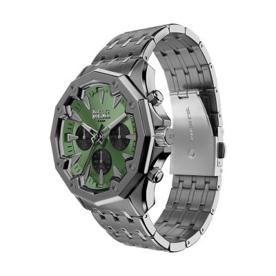This Diesel watch has a case made of stainless steel with a diameter of 46 mm and is fitted with a stainless steel band. Inside the case lies a Seiko Instruments Inc. movement and the watch features a Mineral crystal.