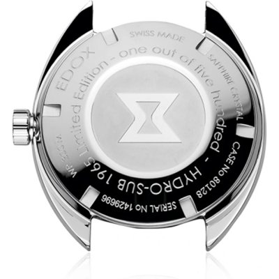 This Edox Hydro-Sub is a special limited to only 500 edition. It is water resistant up to 30 ATM and powered by an automatic Edox Calibre 806 movement which is based on the Sellita SW200 and COSC certified. Its classic design is enhanced by the subtle ceramic bezel inset and prominent luminous hands and indices.