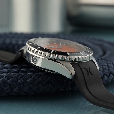 Edox’ nickname has been ‘the water champion’ for a long time. It is in this spirit that the Skydiver Neptunian series was developed. It is the ultimate classic diving watch with an astounding 1000m water resistance! It is a comfortable, modern watch with a Swiss Made automatic Edox Cal. 80 movement (based on the Sellita SW200), sapphire crystal with an AR coating,and available with a rubber strap or steel bracelet and in several colors. The case back is embossed with the Roman god of the sea Neptunus, further emphasizing the Skydiver Neptunian’s extraordinary diving pedigree.