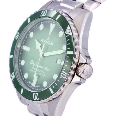 This Edox watch has a case made of stainless steel with a diameter of 42 mm and is fitted with a stainless steel band. Inside the case lies a ETA movement and the watch features a Sapphire crystal.