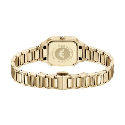 This Emporio Armani watch has a case made of stainless steel with a diameter of 35 mm and is fitted with a stainless steel band. Inside the case lies a Seiko Instruments Inc. movement and the watch features a Mineral crystal.