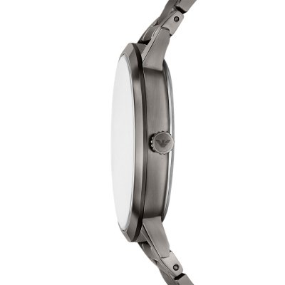 This Emporio Armani watch has a case made of stainless steel with a diameter of 43 mm and is fitted with a stainless steel band. Inside the case lies a Seiko Instruments Inc. movement and the watch features a Mineral crystal.