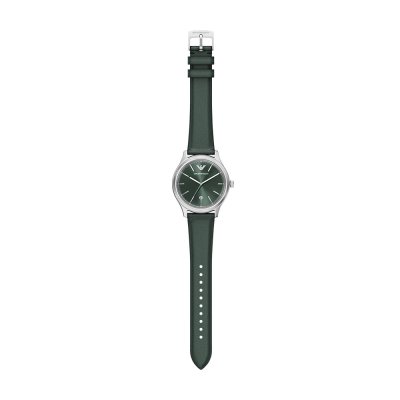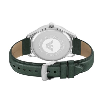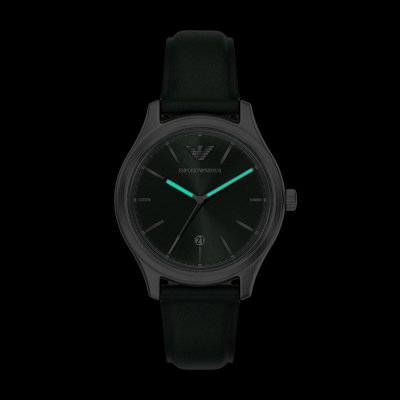 This Emporio Armani watch has a case made of stainless steel with a diameter of 41 mm and is fitted with a leather band. Inside the case lies a Miyota movement and the watch features a Mineral crystal.