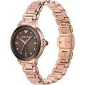 This Emporio Armani watch has a case made of stainless steel with a diameter of 32 mm and is fitted with a stainless steel band. Inside the case lies a Miyota movement and the watch features a Mineral crystal.