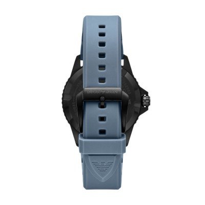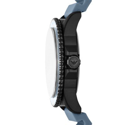 This Emporio Armani watch has a case made of stainless steel with a diameter of 42 mm and is fitted with a rubber band. Inside the case lies a Seiko Instruments Inc. movement and the watch features a Mineral crystal.