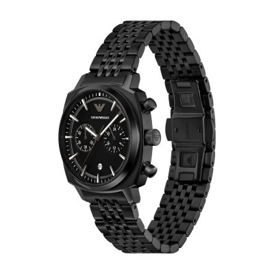 This Emporio Armani watch has a case made of stainless steel with a diameter of 40 mm and is fitted with a stainless steel band. Inside the case lies a Miyota movement and the watch features a Mineral crystal.