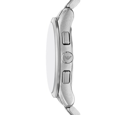 This Emporio Armani watch has a case made of stainless steel with a diameter of 41 mm and is fitted with a stainless steel band. Inside the case lies a Miyota movement and the watch features a Mineral crystal.