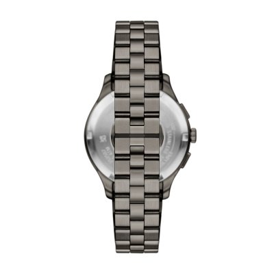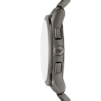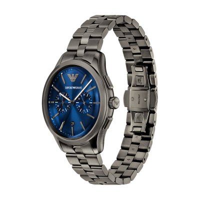 This Emporio Armani watch has a case made of stainless steel with a diameter of 41 mm and is fitted with a stainless steel band. Inside the case lies a Miyota movement and the watch features a Mineral crystal.