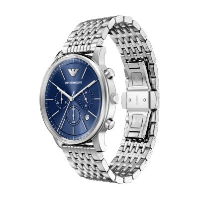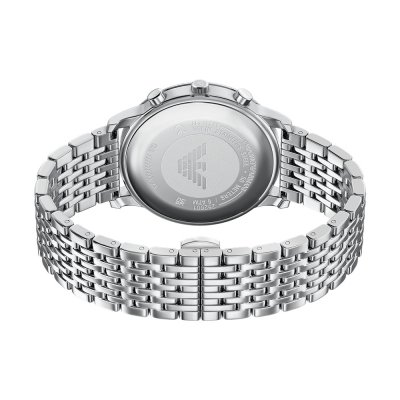 This Emporio Armani watch has a case made of stainless steel with a diameter of 42 mm and is fitted with a stainless steel band. Inside the case lies a Miyota movement and the watch features a Mineral crystal.