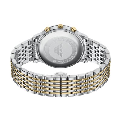 This Emporio Armani watch has a case made of stainless steel with a diameter of 42 mm and is fitted with a stainless steel band. Inside the case lies a Miyota movement and the watch features a Mineral crystal.