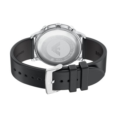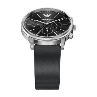 This Emporio Armani watch has a case made of stainless steel with a diameter of 42 mm and is fitted with a leather band. Inside the case lies a Miyota movement and the watch features a Mineral crystal.
